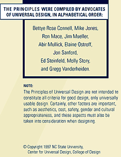 Universal Design will bring more substance and value to one’s life than any other lifestyle change. Many Universal Design features are standard design and building concepts that are placed or sized differently.
